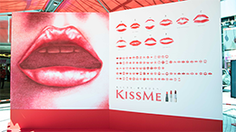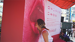 渋谷109前で行われたイベントの初日には、リップスティック・レックスさんが登場し、その場で作品にキスを重ね『キスアート』を仕上げる完成披露イベントを行いました。作品のインパクトに多くの人が思わず足を止め、2日間の展示期間で3,000人以上がイベントに参加。文字が全てキスマークで表現されていることや、唇の巨大なビジュアルが全てキスマークで描かれていることに驚くなど、楽しんでいただく様子が見られました。